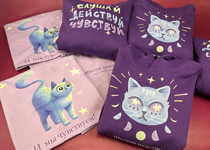 С помощью технологии ДТФ-печати получились одинаково яркие рисунки и на темном, и на светлом фоне.